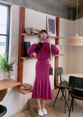 : 탑+스커트SET 자두 후드 투피스