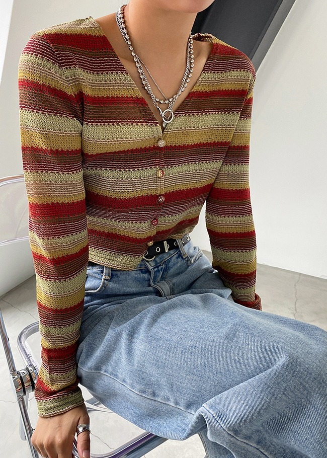 배색스트라이프 가디건