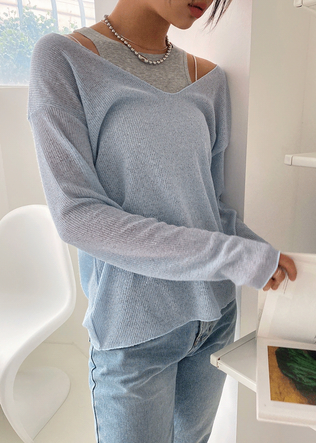 린넨시스루 브이니트