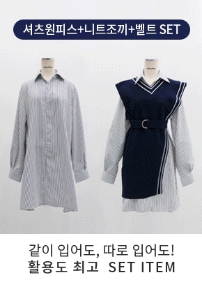 : 조끼+셔츠원피스 SET 워너비 셔츠원피스 조끼세트
