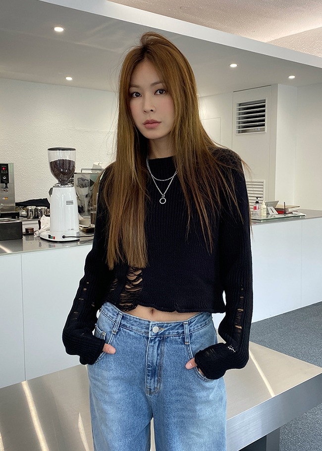 데미지컷 크롭니트