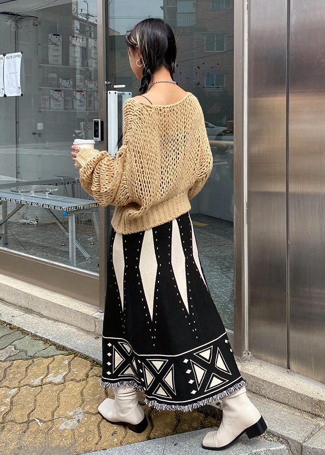 프린지패턴 니트스커트