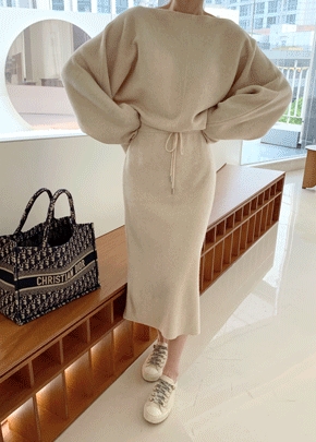 : 탑+스커트 SET 클로바 보트넥 니트 투피스