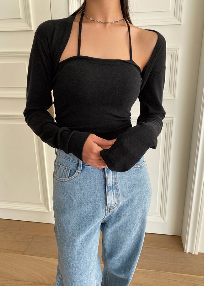 라이트 크롭가디건셋트