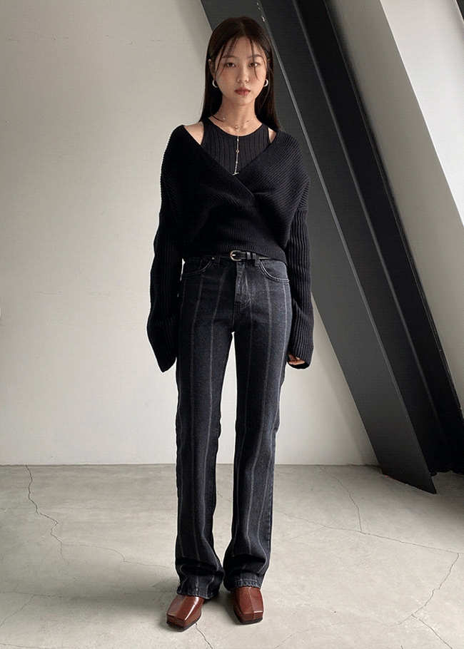 스트라이프배색 부츠컷진