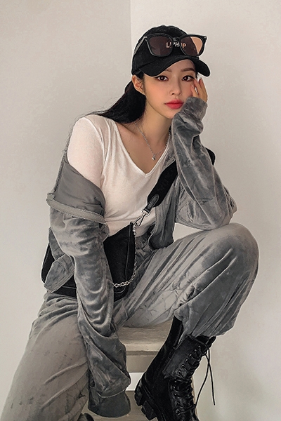 벨벳후드집업세트