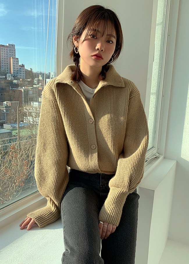 버튼하이넥 울가디건