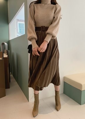 : 탑+스커트 SET브론즈 벨트플리츠 투피스