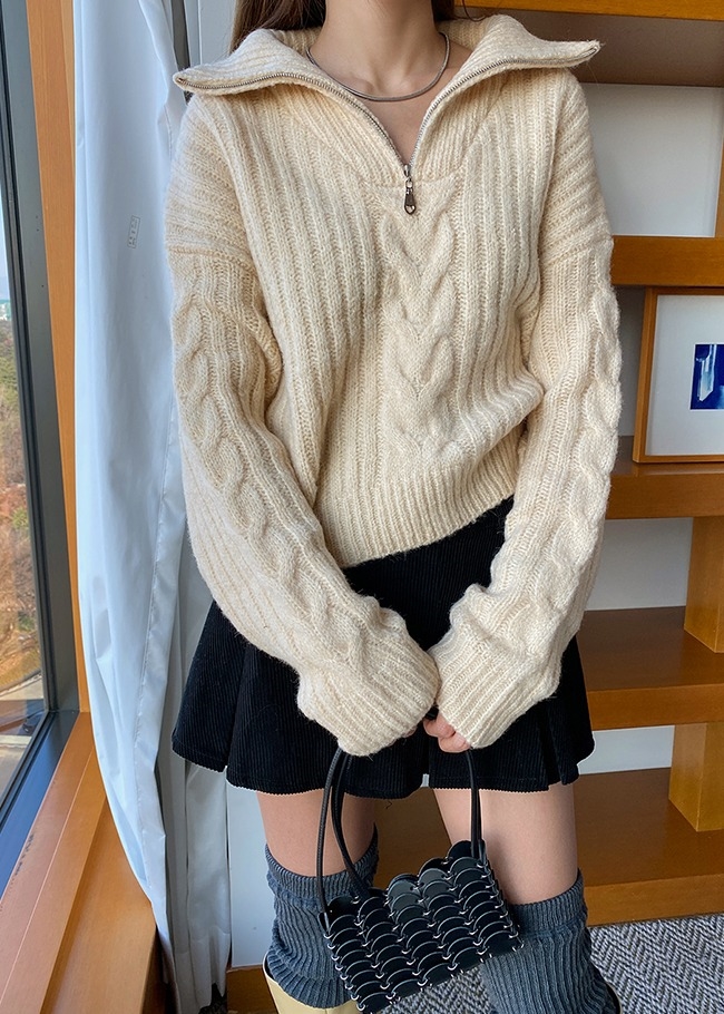 드롭로프 집업넥니트