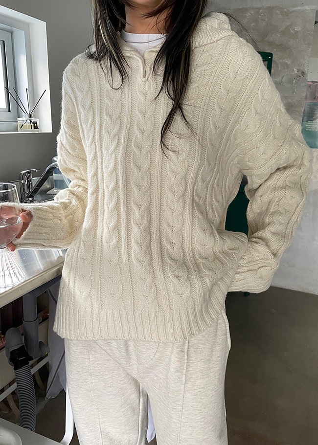 꽈배기후드 루즈핏니트