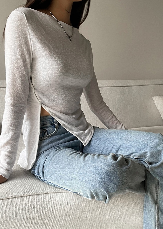 언발버튼 보트넥티셔츠