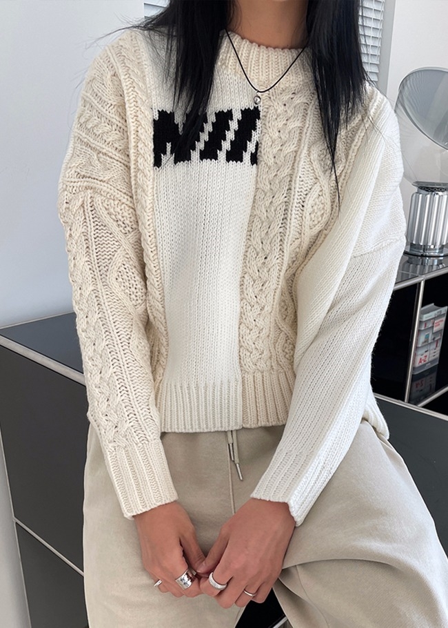 케이블배색 라운드니트