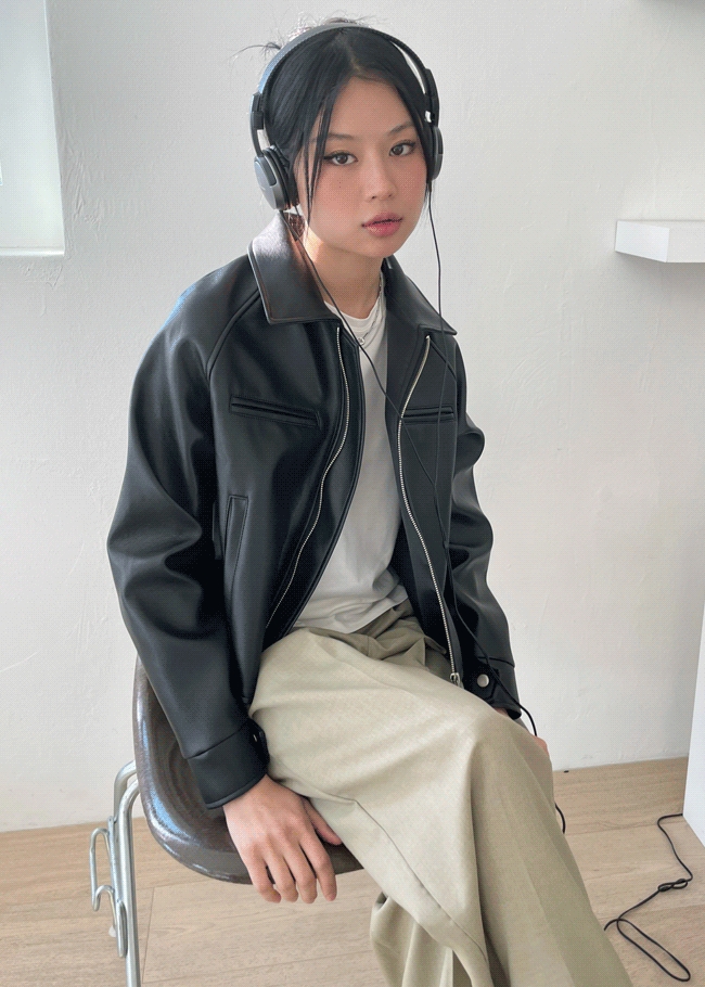 솔리드크롭 레더자켓
