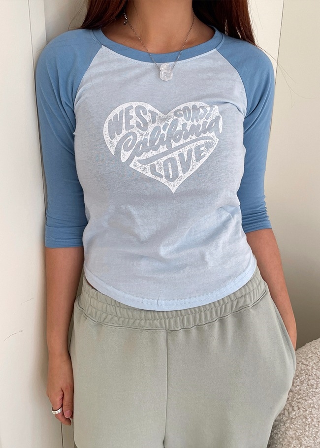 하트프린팅 배색티셔츠