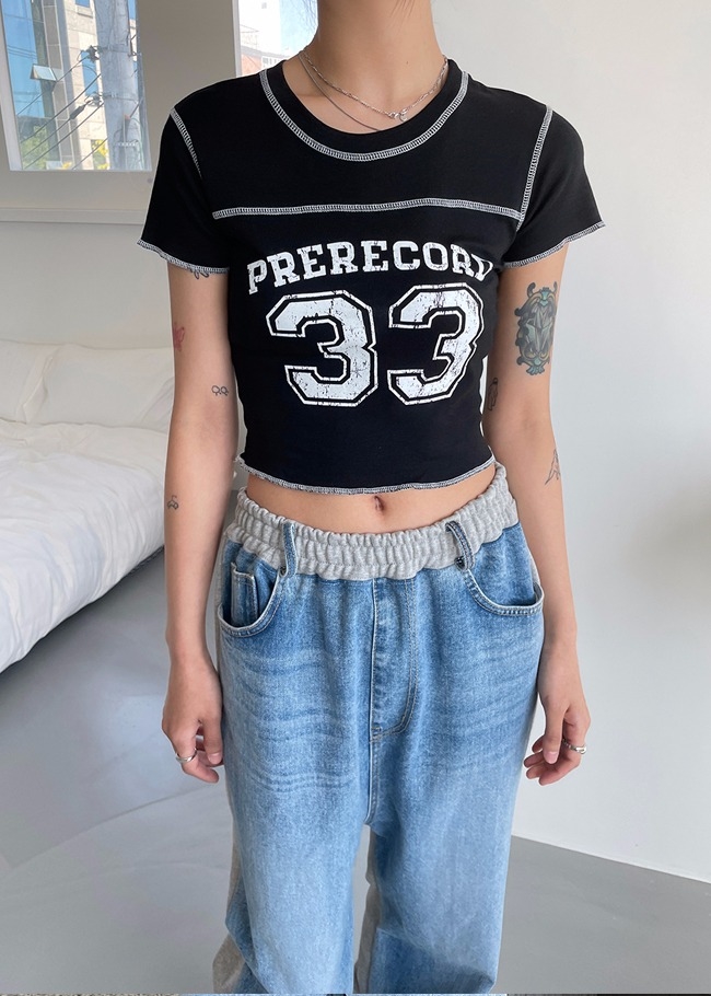 넘버프린팅 크롭티셔츠
