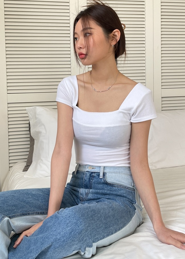 스퀘어넥 캡소매티셔츠