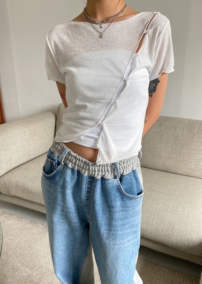슬림더버튼 크롭티셔츠