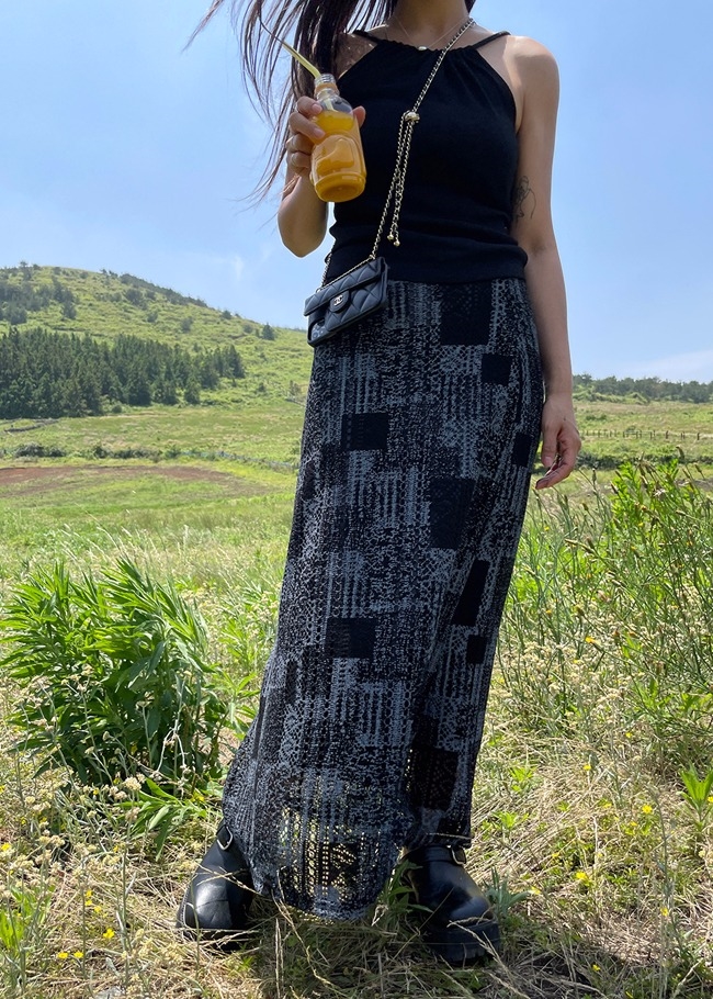 스퀘어스탬프 스커트