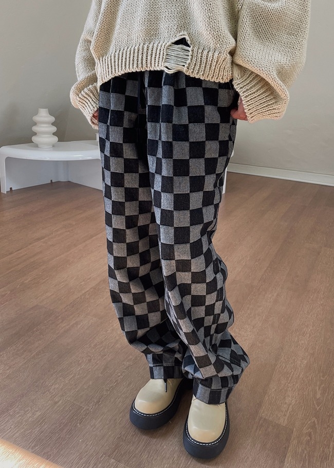 체커데님 밴딩팬츠