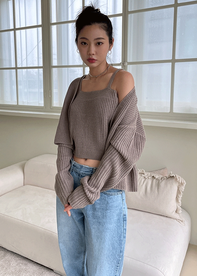 볼드짜임 가디건셋트