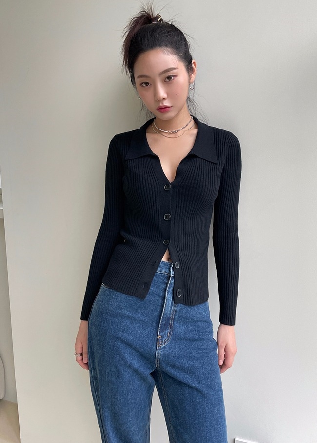 슬림브이넥 카라가디건