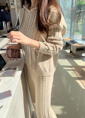 : 탑+팬츠 SET 꽈배기 울니트 투피스