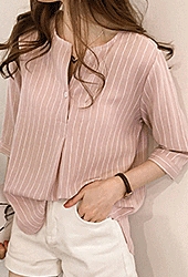 [당일발송8] 라운드 트임넥 스트라이프 롱 블라우스
