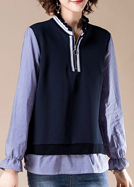반집업 스트라이프 레이어드 탑