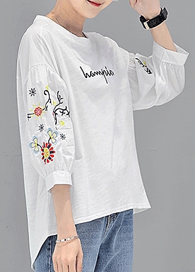 소매 플라워 자수 포인트 루즈핏 티셔츠[TS#3091]