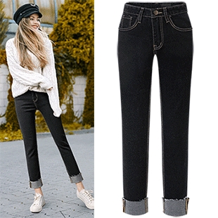 BPT19664[더 편해JEAN]흑청 롤업 데님
