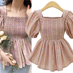 TBL20267 윙키 체크 스모크 블라우스