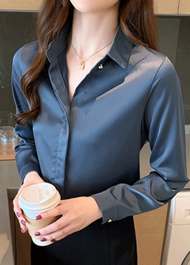 [재입고] 실크 촉감 모던 카라 블라우스