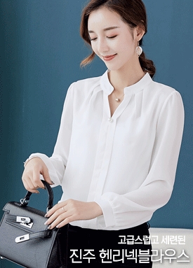 [당일발송]진주 헨리넥 블라우스