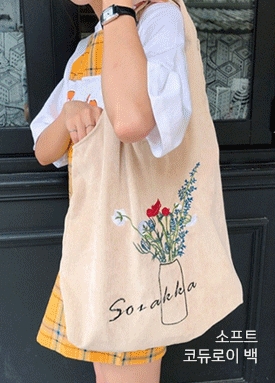 플라워 자수 코듀로이 숄더백