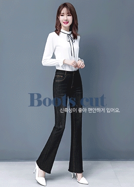 스크래치 스판 부츠컷 롱 데님 팬츠