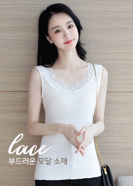 리본 레이스 브이넥 모달 슬리브리스[SS#124]