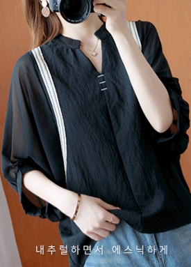 [재입고] 시스루 볼륨소매 에스닉 무드 블라우스