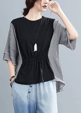 체크 배색 밴드 티셔츠
