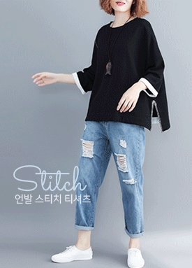 언발 스티치 옆트임 코튼혼방 티셔츠