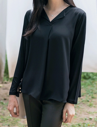 브이넥 쉬폰배색 내추럴핏 심플블라우스
