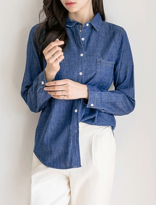 내추럴핏 양포켓 베이직 데님남방