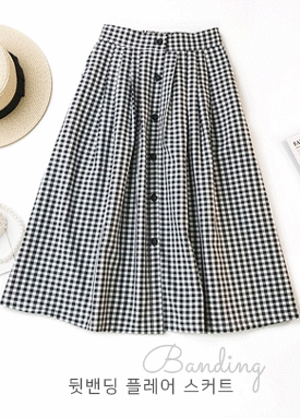 앞단추 뒤 밴딩 플레어 체크 스커트