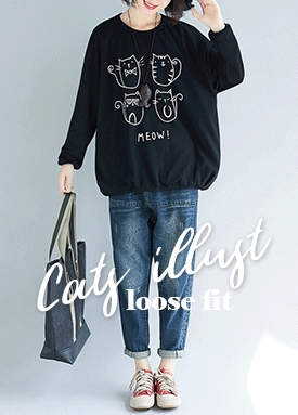 캣츠 일러스트 루즈핏 라운드 티