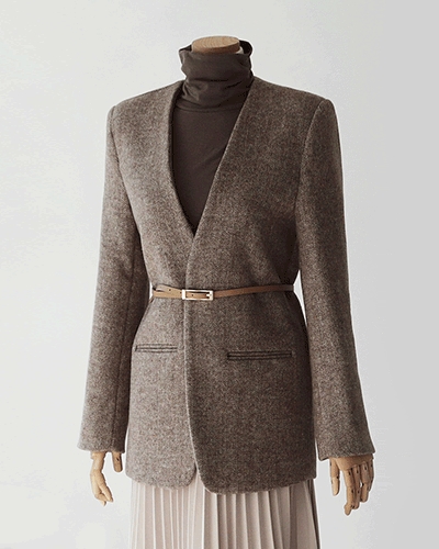 노카라 헤링본 울 자켓 코트