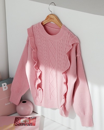 꽈배기 어깨 프릴 니트
