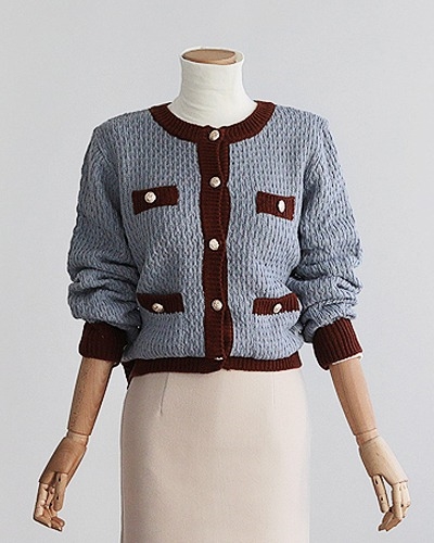 진주 버튼 배색 니트 가디건