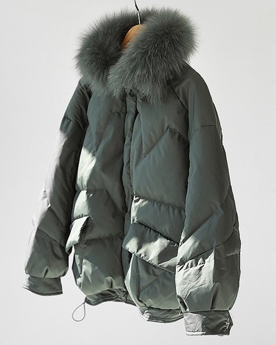 폭스 퍼 오리털 패딩 점퍼