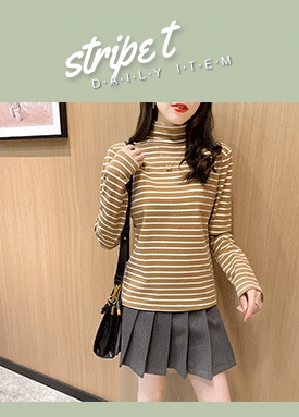[당일발송] 프렌치 스트라이프 터틀넥 티