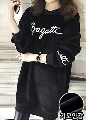 [재입고] 레터링 벨벳 기모 롱 티셔츠