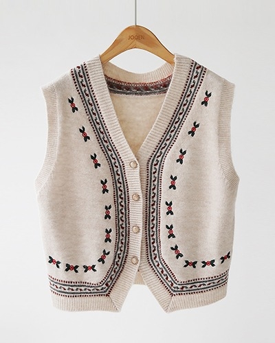 빈티지 플라워 자수 니트 조끼